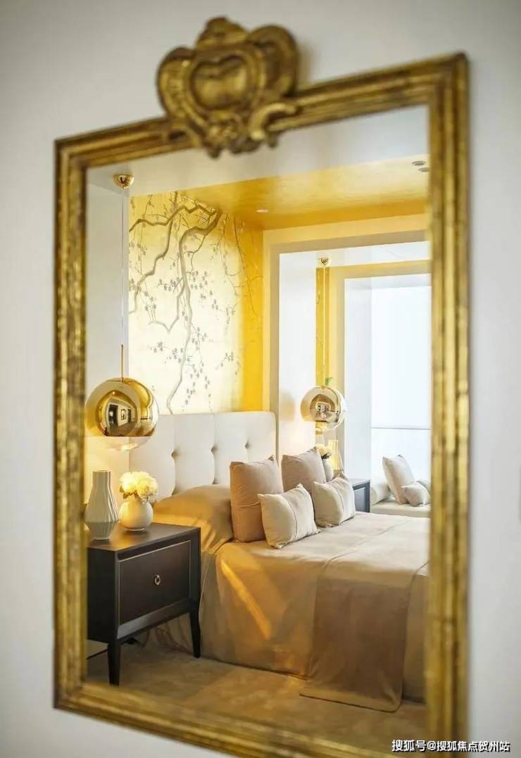 复古的金框镜子与对称布局的床头柜极具海派风情,东西文化通过实体承载而再次融合。