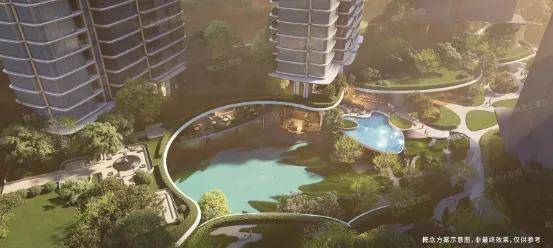 都市中心鲜有的约 3.4 超低密新规产品,边界半开放围合式"一心十岛"布局与约12米高空悬浮住区,巧妙界定私享与公共的社交分寸,以景观互动廊桥链接私享静谧与城市公共生活。