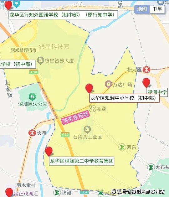 00001.教育:片区规划 5 所幼儿园 + 3 所九年一贯制学校,目前学区划片观澜中心学校(小学)、观澜二中 / 龙华第三外国语学校(初中),周边还有龙华高级中学观澜校区,全龄教育覆盖。