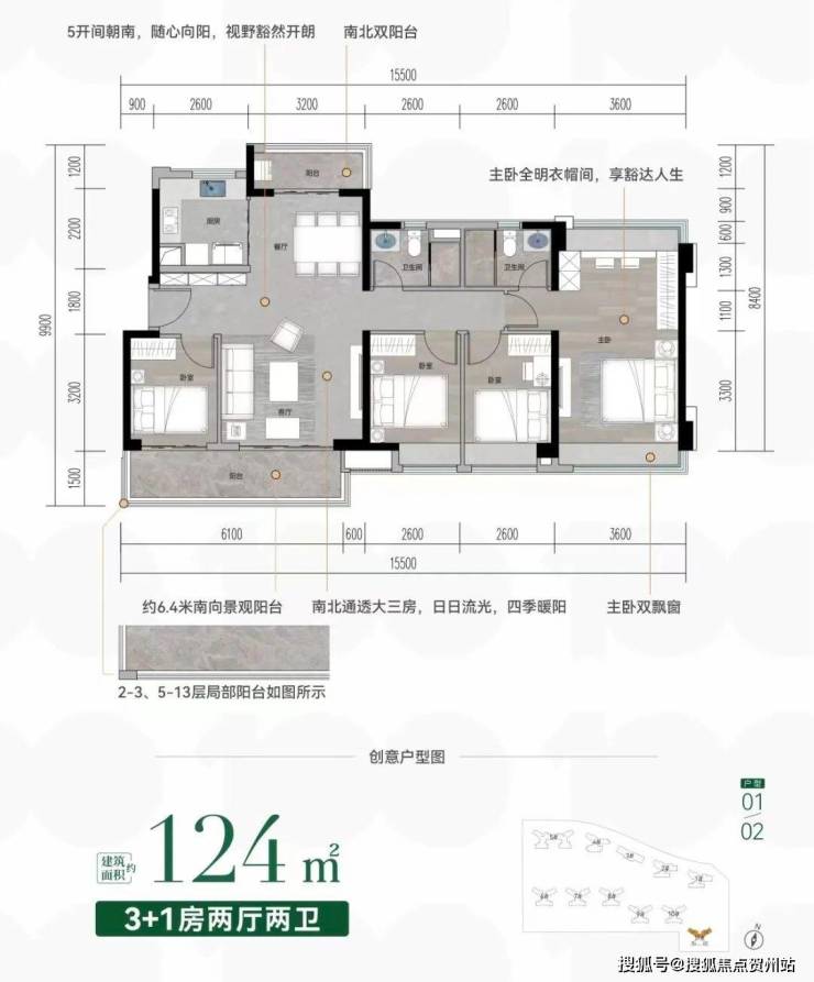 🩸【南北双阳台】约6.7米宽景阳台,约15.5米大面宽朝南,拥揽四季人生景致
