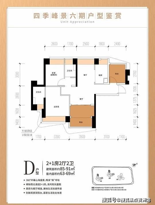 设计亮点足:多数户型朝南或南北通透,采光通风评分高达 9.5 分以上,73㎡户型客厅面宽 7.2 米,空间开阔不压抑,部分高楼层还能看山景。