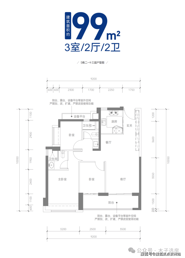 【建面约99㎡三房两厅两卫】