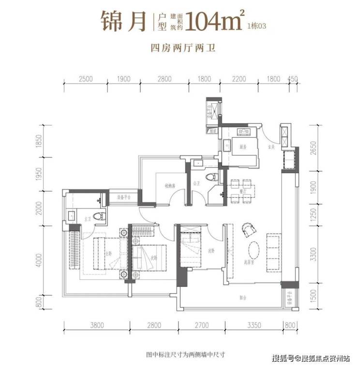 •锦月·建面约104㎡4房2厅2卫:南向四开间,6米阳台引景入室,自此生活融于风景。