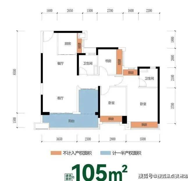 建筑面积约95㎡三房 | 小面积王炸户型,全盘仅售62套!