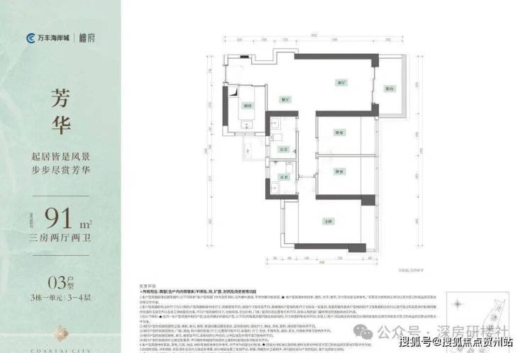 约91㎡3房2厅2卫,四开间朝公园,约11米通风采光面!