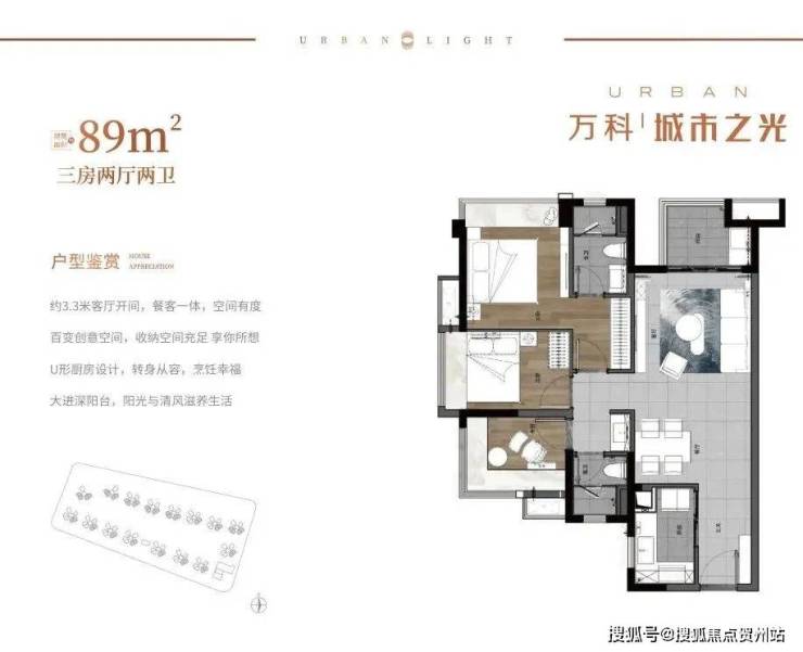 中山·万科地产城市之光項目項目的户型图设计上,秉持了万科地产城市之光系列产品创作的优势和特征,不但进深宽阔,向南透彻,南北方自然通风之外也确保了光照优异;每个功用间分间显著,多功能性更为实用性的同时还能提升房屋的整个外观。让每一个房型都真真正正对得起“城市之光”的称号。