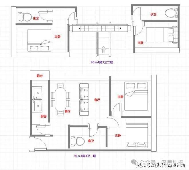 96㎡4房3卫一层2套双面采光,西南前海湾+大小南山,东南深圳湾+大小南山,东北深圳湾+城市景观