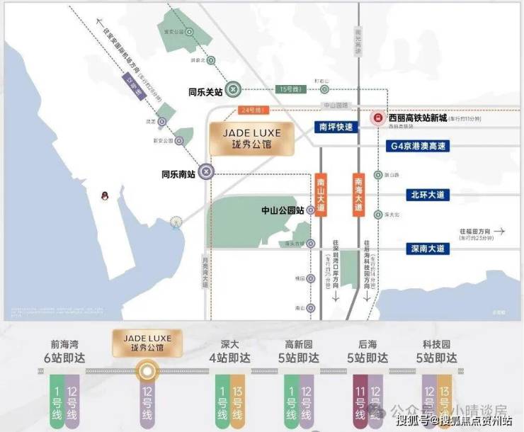 以珑秀公馆所在为例,依托深圳地铁15号线、12号线、24号线,因其首个深圳环线格局,被美誉为深圳的“一环”,集中了深圳多个顶级豪宅区。珑秀公馆坐享同乐关站,与上述重点区域时刻保持密切关系。