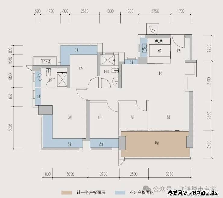 客厅与次卧可拓展,奢想阔绰空间。双L型飘窗,多面采光通透舒适。