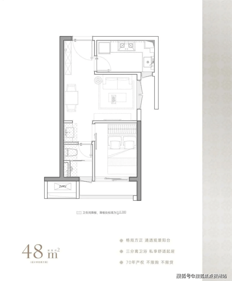 建面约45-48㎡,格局方正,功能齐备带阳台,卫生间三分离设计;且经专业人士评判,该户型可以改造为两房,在寸土寸金的福田实现面积利用最大化,预计未来租金可达6800-7000元/月。