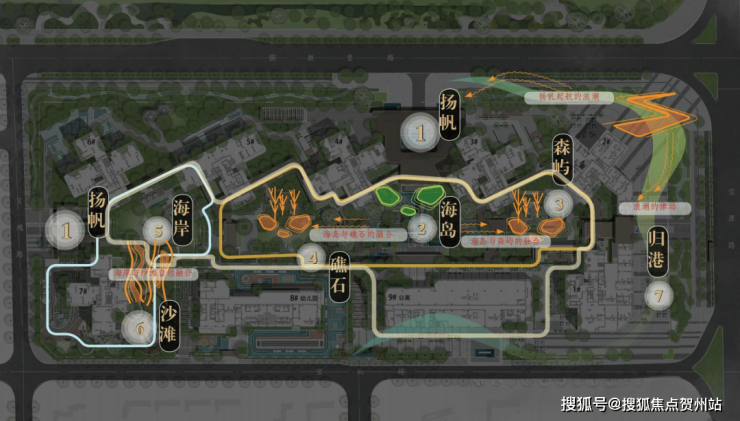 再来说园林,规划体量很大,融入山海风情,还有下沉式庭院丰富内部景观的层次感,将游园动线从平面升维到立体。