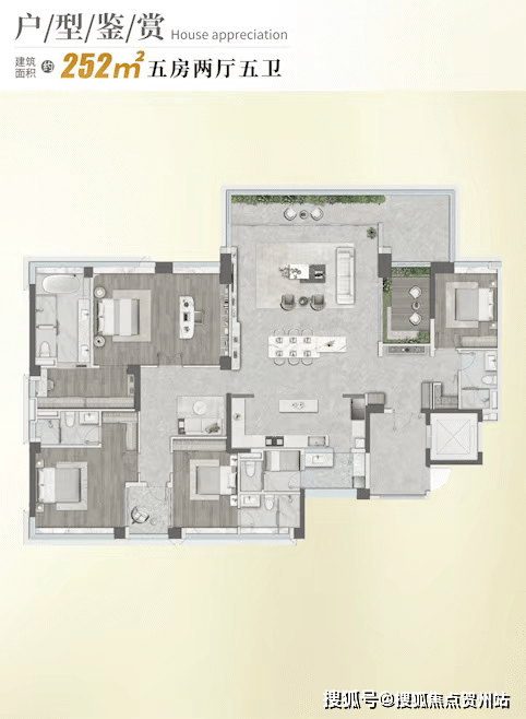 户型:主推建面约 121-252㎡的四至五房改善型大户型。其中 121㎡四房为两梯四户,有 12 米奢阔面宽;252㎡五房为一梯一户,有四套房和独立家政间,层高 3.15 米。