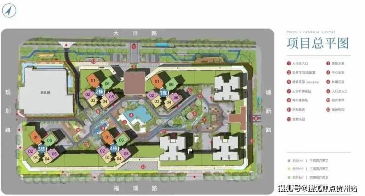 住宅户型:建面约84-128㎡三至四房,住宅使用率约78%(未包含不计容的飘窗、一半阳台)