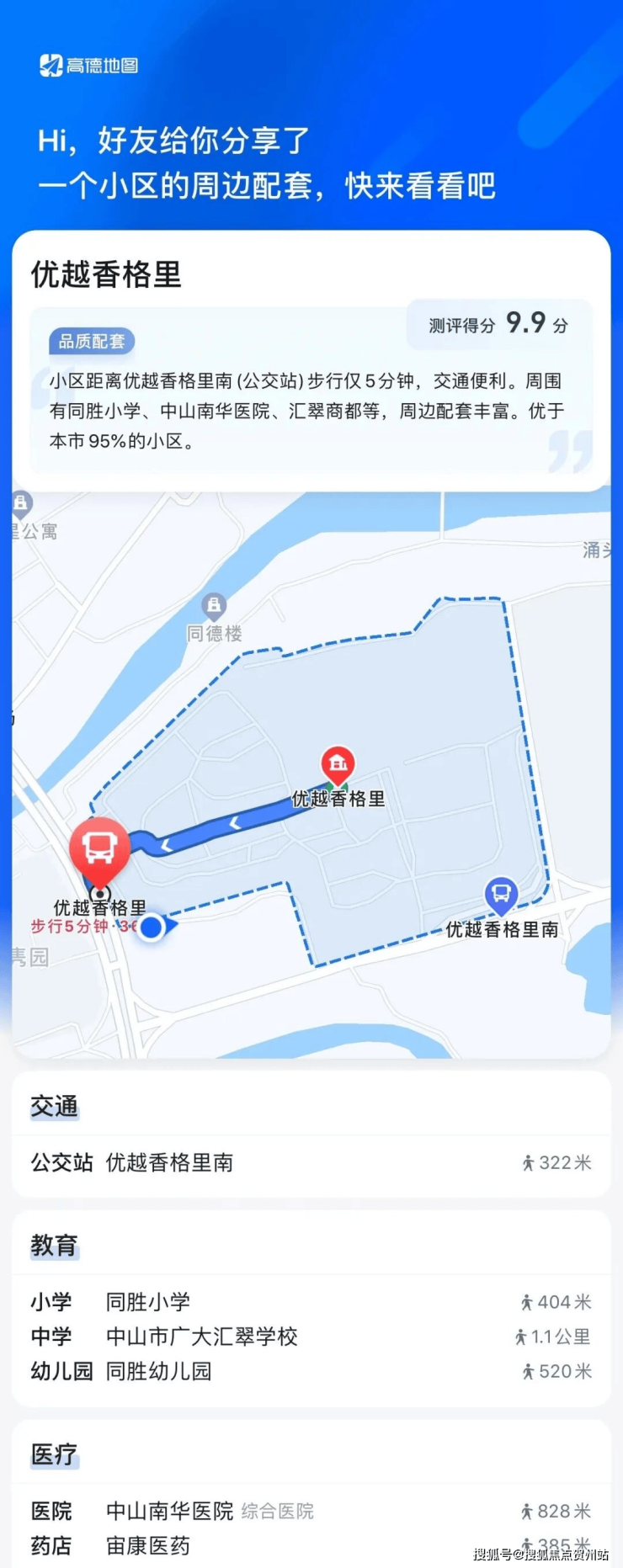 1. 公交車站(1公里以內):優越香格里、優越香格里南、同勝合益市場、坦洲南華醫院、中澳景湖居、中澳世紀城等;