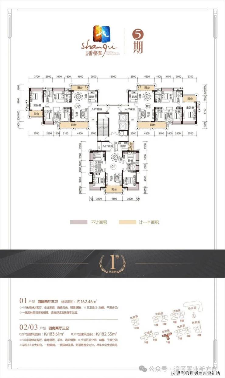 01戶型183㎡,五房兩廳三衛,南北通透,雙陽台設計,豪華闊綽大客廳,極度舒適的動靜分區,更是擁有罕見的7.2m大陽台,盡顯大宅生活風範