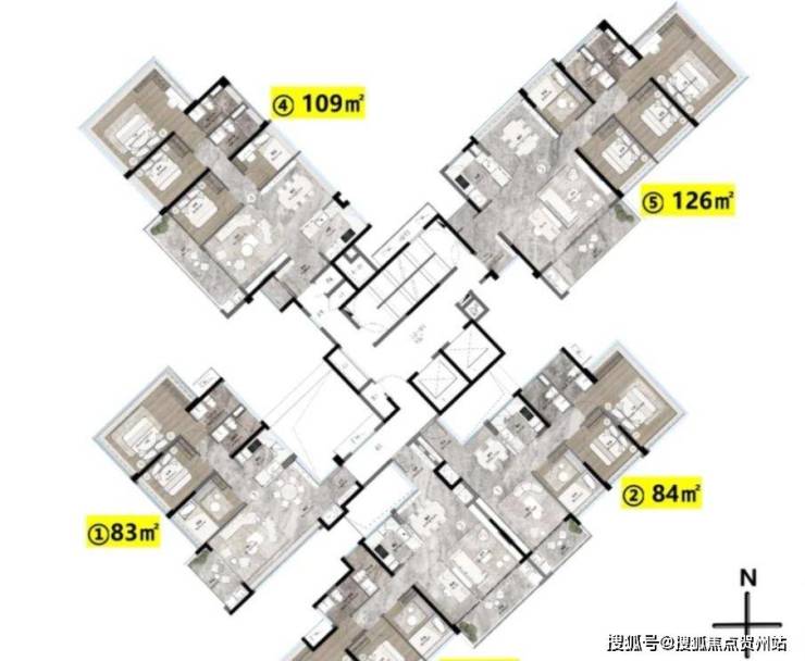 首开楼栋是039地块4栋,2梯5户设计,总层高27-28层。