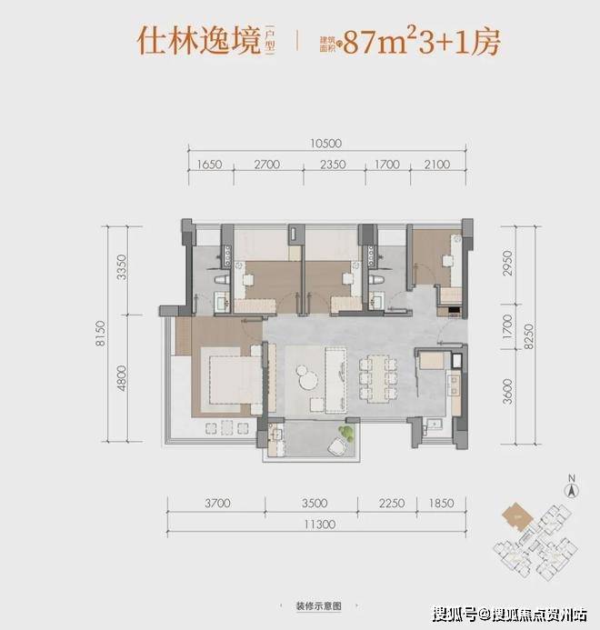 仕林逸境建面约87m²3+1房