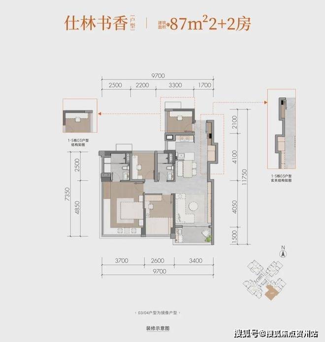 仕林书香建面约87m²2+2房
