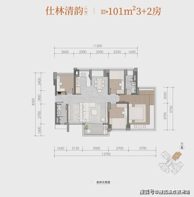 仕林清韵建面约101m²3+2房
