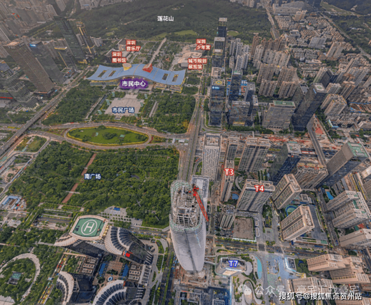 深圳中心天元项目位于福田CBD中心区东南侧,北临深南大道,南至福华三路,坐拥深圳政治、金融、企业总部、商业消费、人文艺术、交通枢纽、资讯、社交、医疗等中心,占地面积约22.3万㎡,总建筑面积约140万㎡,共由6栋住宅与公寓组成,总套数约795套,产品面积主要以200-450㎡的超高层大平面户型为主。