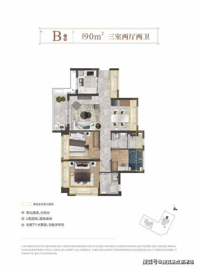 【产品面积】:76㎡3房2厅1卫、90㎡3房2厅2卫