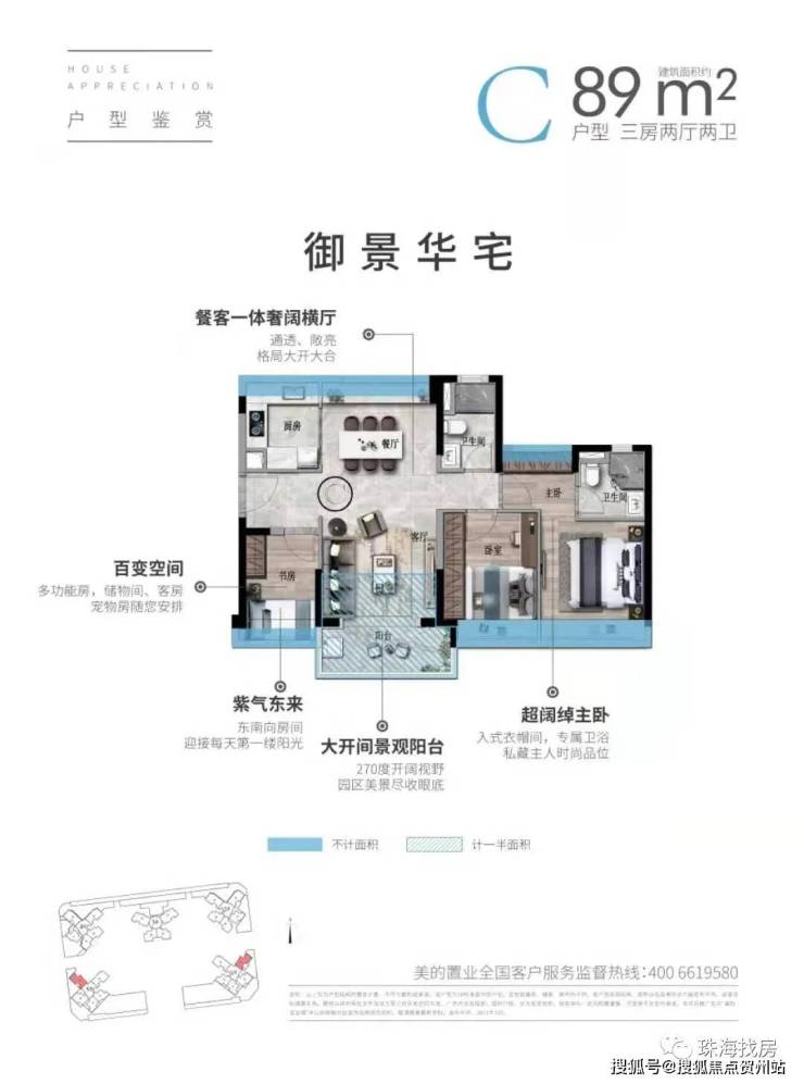 ■ 89㎡三房两厅两卫人性化设计,功能独立方便实用厅出阳台设计,享园林四季美景超高赠送面积,创意空间随心享