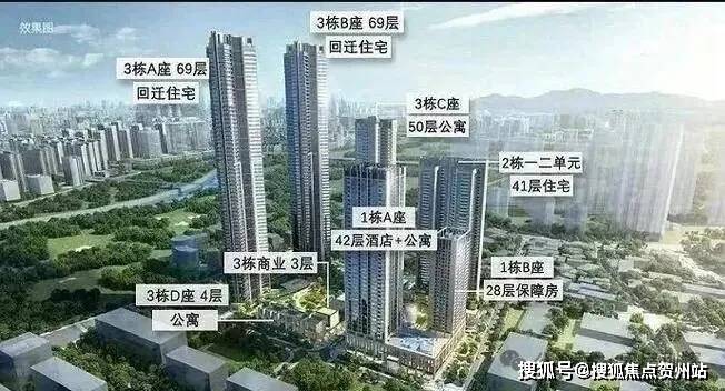 总栋数:8栋(1A栋42层酒店+公寓、1B栋28层保障房,2栋1/2单元41层住宅,3A/3B栋69层住宅;3C栋50层公寓、3D栋4层公寓)