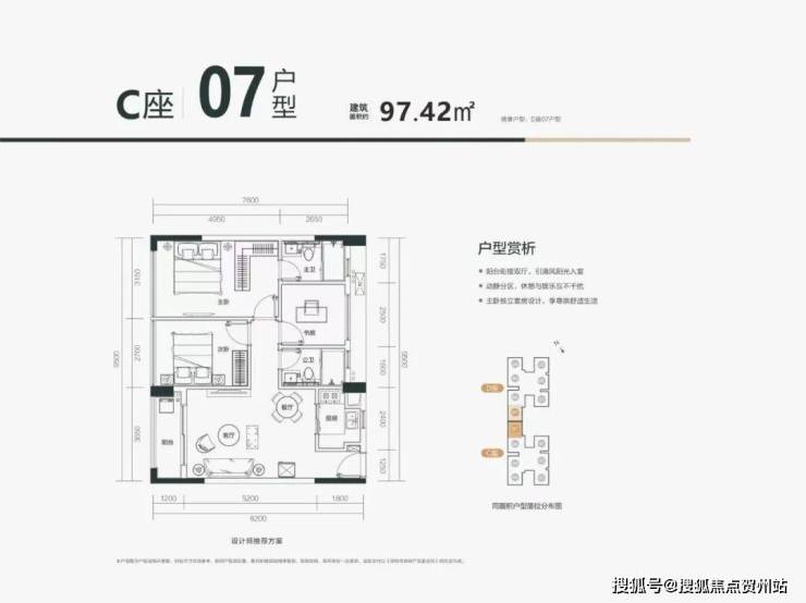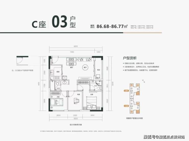 C03户型:约86㎡全能大三房,南北通透+ 全明格局
