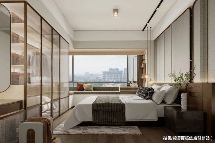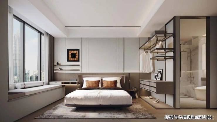 近20㎡超大主卧,配备独立、干湿三分离洗手间、化妆台功能,打造全功能生活场景体验;800mm转角飘窗,270°景观视野,无敌采光和视野景观,优雅随心。