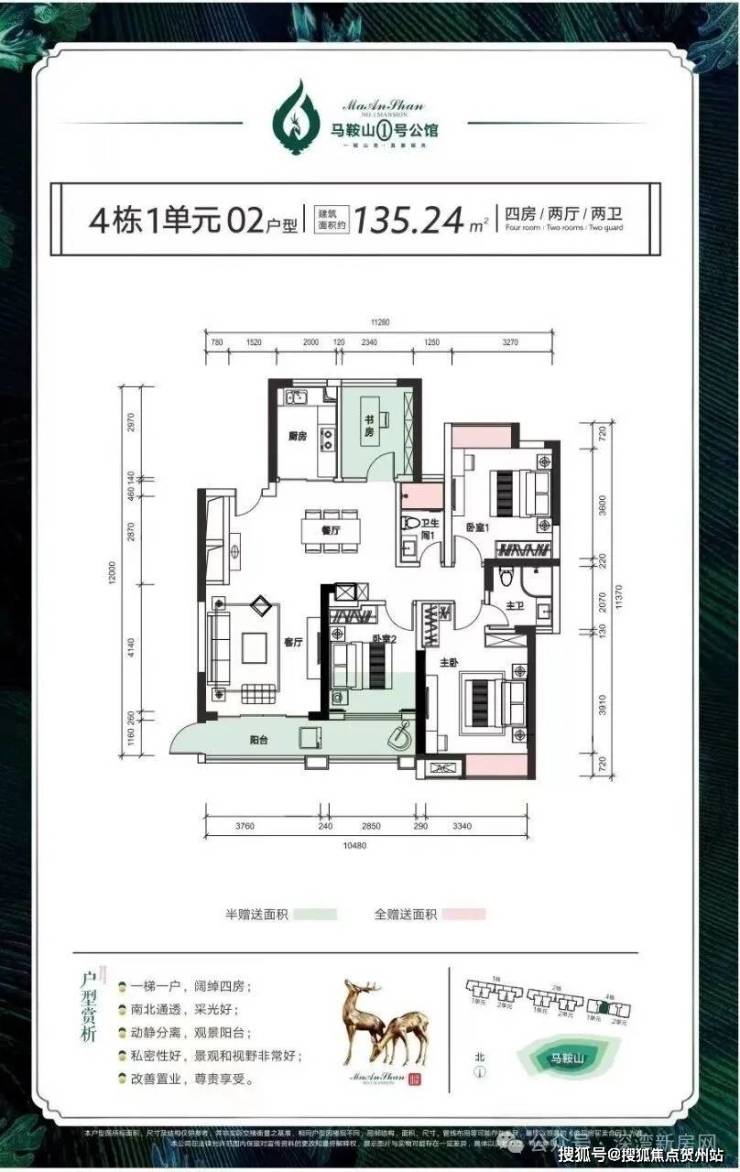 02户型:135.24平米 4*2*2 均价:24280 元 独门独户 南北通透