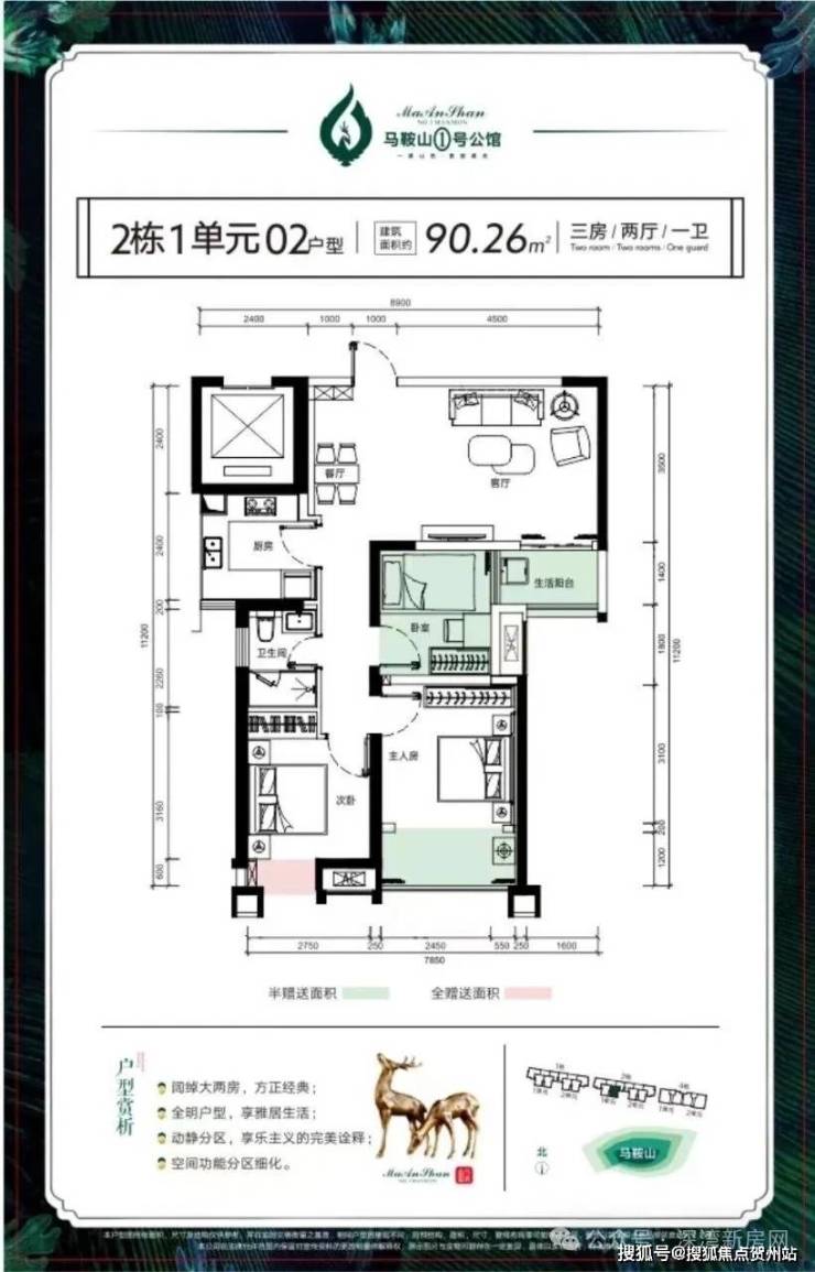 纯板楼设计、户户朝南、马鞍山公园旁