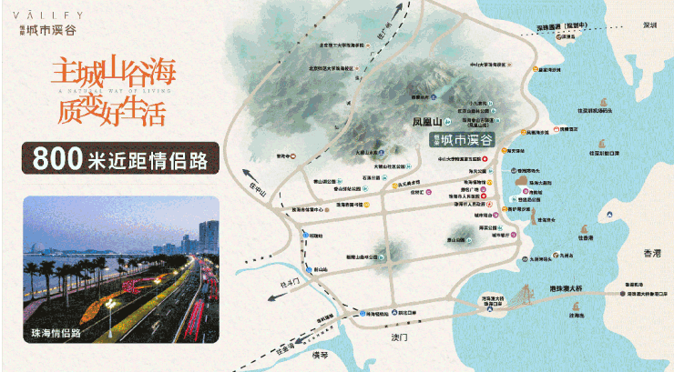 城市溪谷三期拥有三面凤凰山山景,一面高层瞰海的山、海、谷景观优势,南北大中轴观景面排布,在珠海市面在售新盘中绝无仅有。