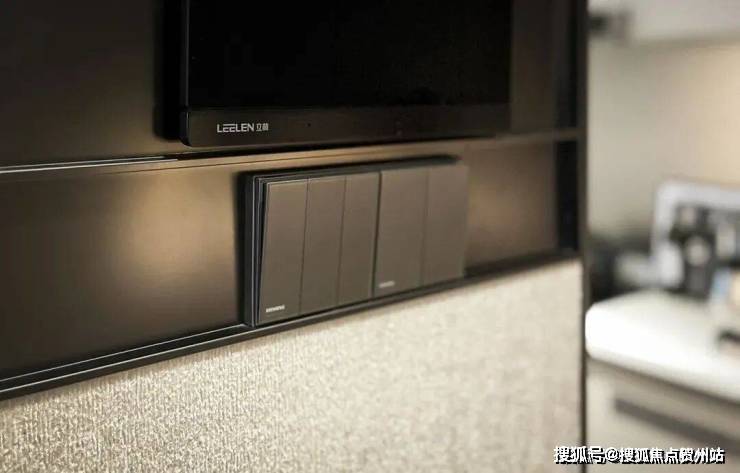 客厅整片的定制岩板背景墙及金属壁龛均为交标