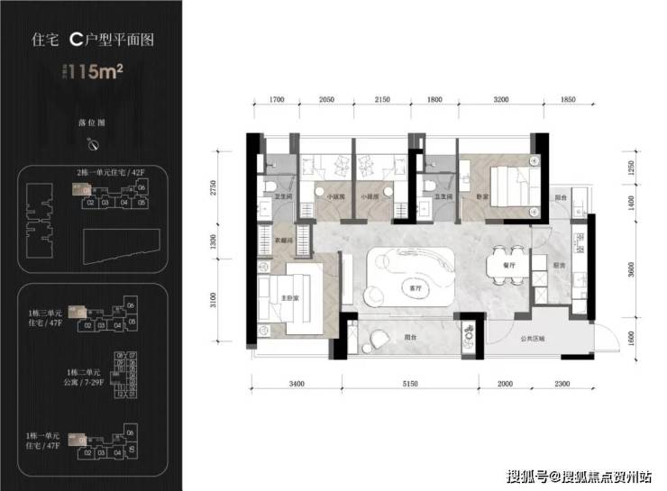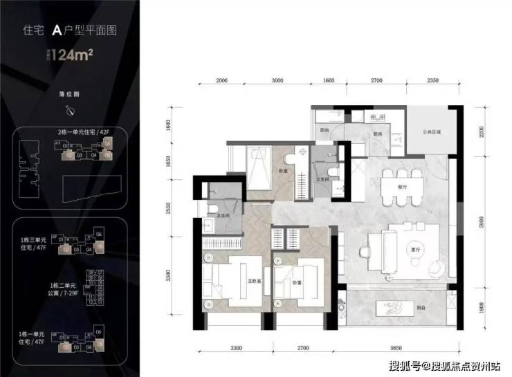 住宅1栋一/三单元47层 住宅2栋一单元42层 公寓29层