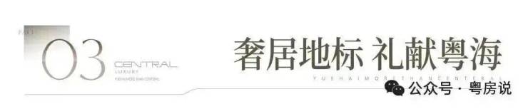 粤海之上 逾50万㎡地标级奢居综合体 总建设用地面积:约41659㎡ 总建筑面积:约516339㎡ 首推主力户型:新规后建面约105-140㎡奢雅空间开发商:深圳市贯凯投资有限公司