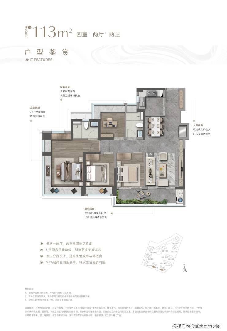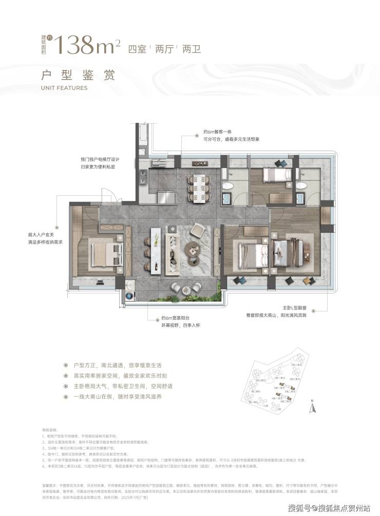 ⑥【一步到位性价比王牌 前海改善头等舱】4栋建面约138㎡奢阔山居范本:LDKB一体化,增配多功能厅、最大约15.5米南向四开间、约6m宽境阳台、主卧270°巨幕飘窗带独立卫浴及衣帽间、最高约94%拓展后综合使用率