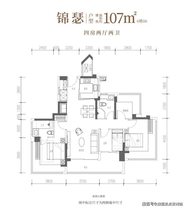 建面约107㎡4房2卫