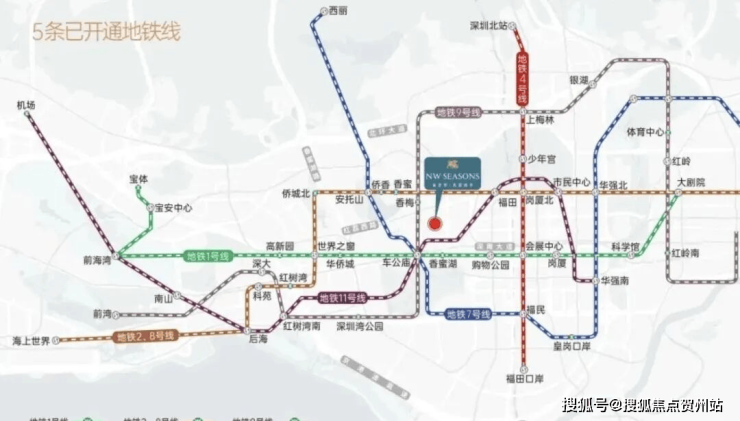 地铁:项目最近的地铁站是9号线香梅站和1号线香蜜湖站;1站车公庙,2站福田中心,3站后海深圳湾;距离9号线香梅站300米。