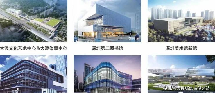 "五馆一体,双子星文体中心建设中,约1公里范围享受大浪文化艺术中心和体育中心;约10公里范围连接深圳第二图书馆、美术馆新馆、演艺馆、展览馆和龙华市政四馆,简上体育综合体、深圳书城和龙华文体中心。"