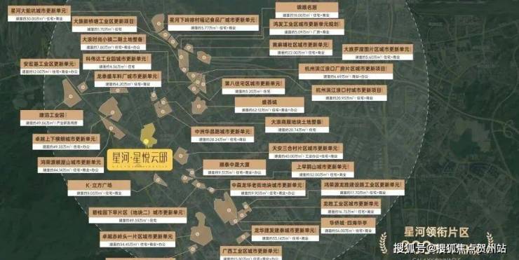 "星河领衔旧改,品牌开发商齐聚,更新片区超800万㎡。星河、华润、鸿荣源、华侨城、卓越等一线品牌发展商聚集,旧改旗舰环绕,享受城市更新头排利好,城市未来迭新。"