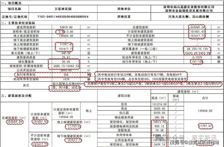 万星林花园项目位于前海合作区南山街道兴海大道东侧,沿山路南侧,宗地号T102-0401。根据本项目《深圳市国有建设用地使用权出让合同》及《建设用地规划许可证》,项目总用地面积53819.80平方米,用地性质为二类居住用地;计规定总建筑面积139654平方米,其中住宅131374平方米、商业3000平方米、幼儿园5000平方米(独立占地面积5400平方米,18班)、物业管理用房280平方米;规定容积率≤2.6;建筑一级覆盖率≤40%,二级覆盖率≤25%;建筑高度限高80米;机动车泊位数1979辆;地块内需提供不少于2690平方米公共开放空间。