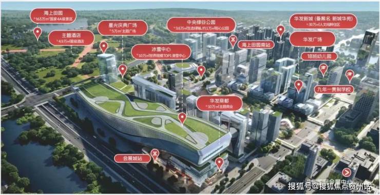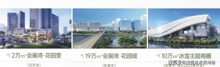 项目板块核心的深圳国际会展城规划超50万㎡商业综合体(含免税店、国际品牌首店),预计2025年逐步开业,将形成辐射大湾区的消费地标;一路之隔的冰雪主题商圈规划建面约10万㎡,预计在2025年开业运营,距离约2公里的会展湾·公园里(建面约2万㎡)已经开业,约5公里有当下沙井最好的商业万丰海岸城购物中心,及即将开业的山姆会员商店,壹方奥特莱斯购物中心。