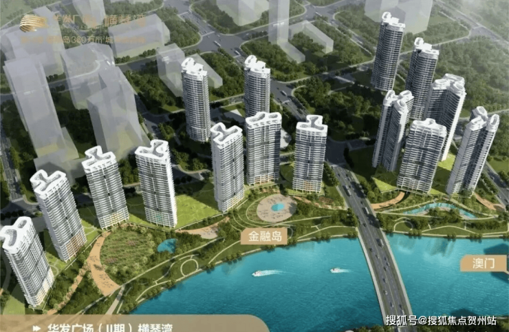 华发广场Ⅱ期横琴湾项目位于横琴金融岛西,是难得的一线河景大盘。项目占地面积约9万 m²,总建面约33.4万m²。