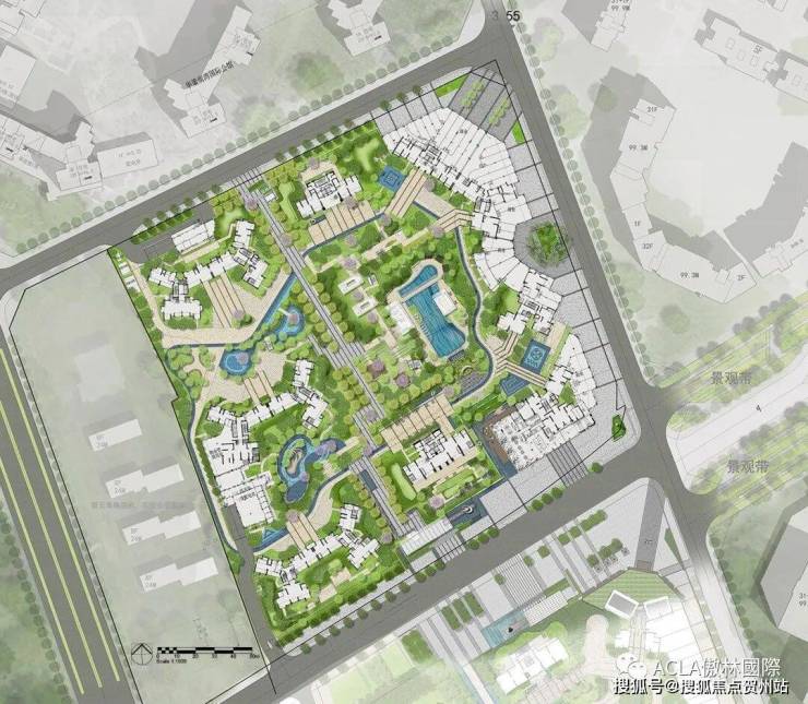 绿景 · 玺悦湾以窗为眸,沿着营销中心的水景,可以在8米长的巨幅数字水幕前稍作停留来作为记忆点。视线穿过水幕还可以隐约看见里面郁郁葱葱楼王花园。