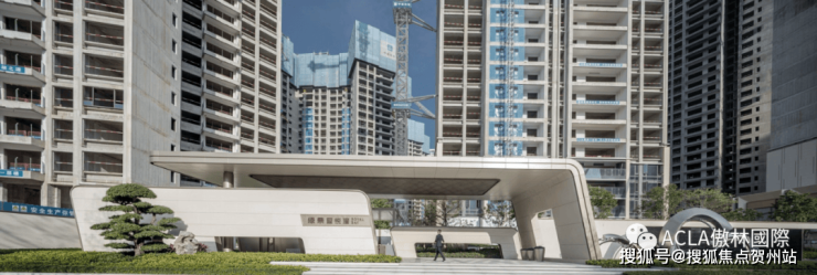 作为绿景 · 玺悦湾形象展示的营销中心,充满艺术感的入口门户,宛如艺术展馆的城市客厅。在茂丰路街角设置引导性的精神堡垒与旱喷来吸引人流;利用开阔的空间尺度打造营销中心前场。别具一格的精神堡垒让人眼前一亮,加深记忆,成为热门打卡点。
