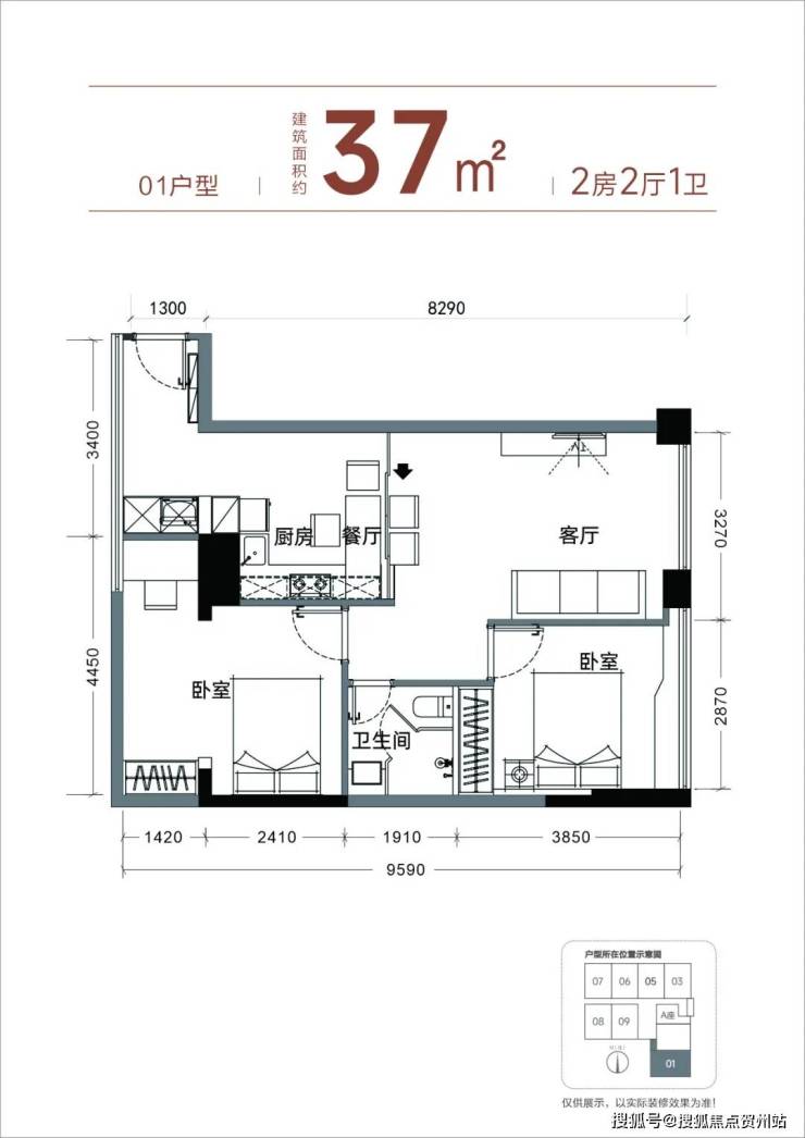 【产品面积】约37㎡小两房或者小三房(实际套内使用面积接近54㎡)