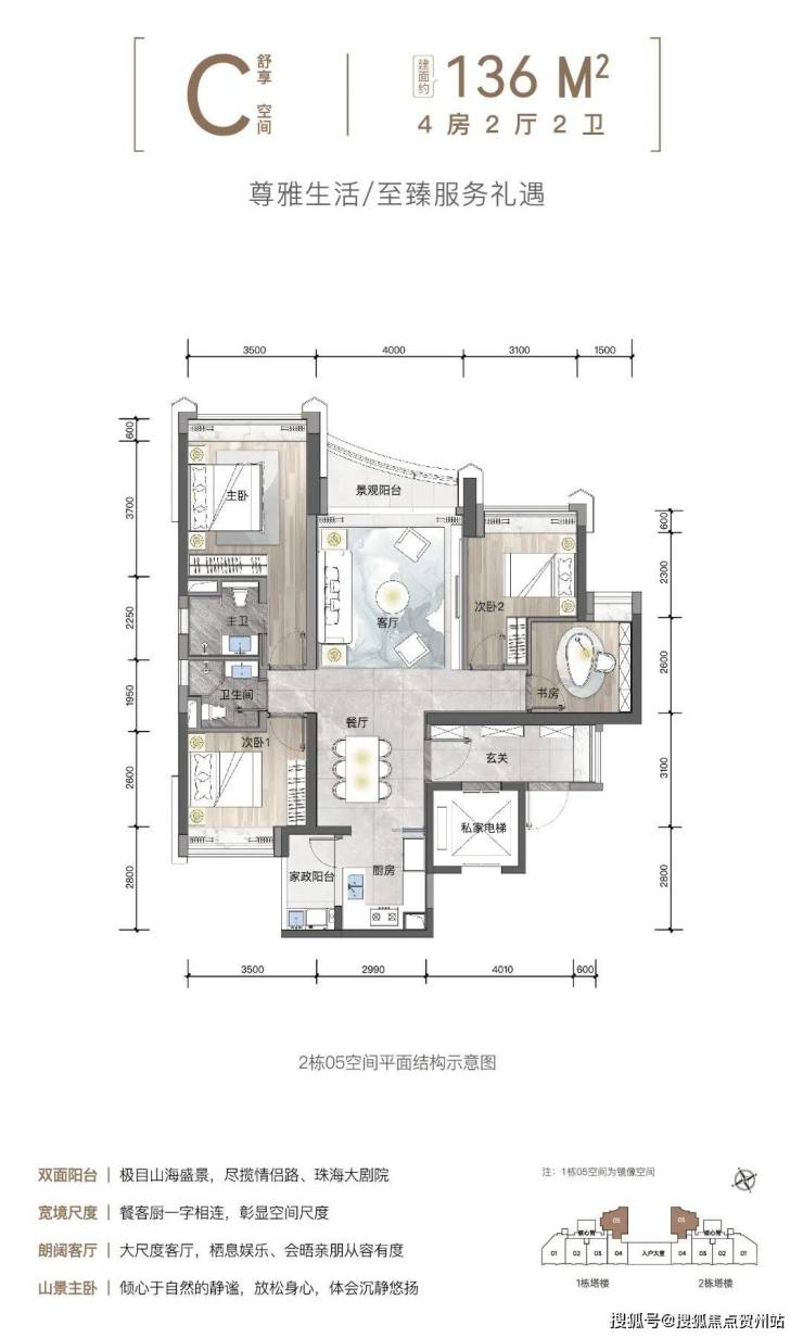 华发·云玺项目内,乃至珠海市中心在售项目中,唯此2栋坐北朝南、背山面海的一线海景奢宅。