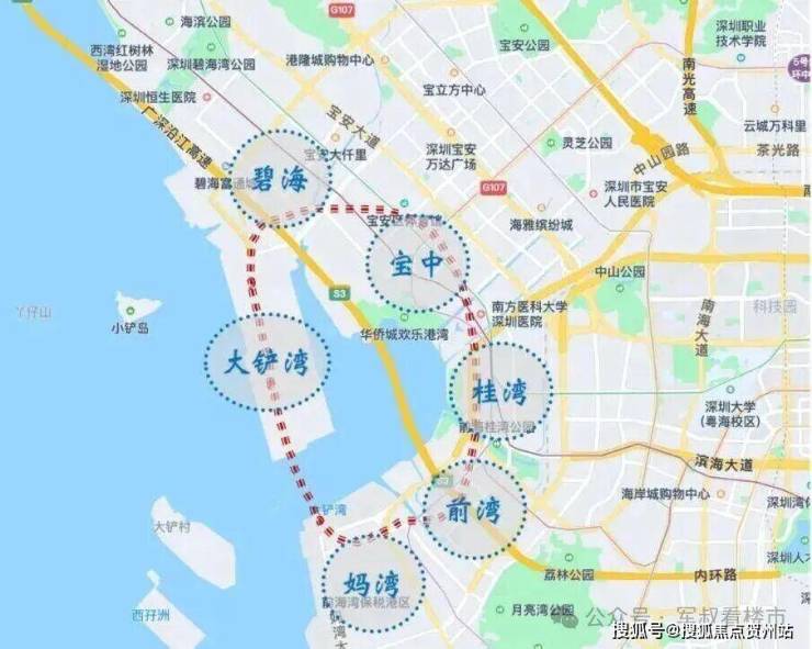 项目位于碧海片区,近11号线碧海湾站(步行约600米),1站速达机场,3站可达南山,轨道交通效率高。周边有广深沿江高速、宝安大道等主干道,自驾往来宝安中心、前海、南山较为便捷。远期规划的15号线和28号线可能进一步强化区域联通。