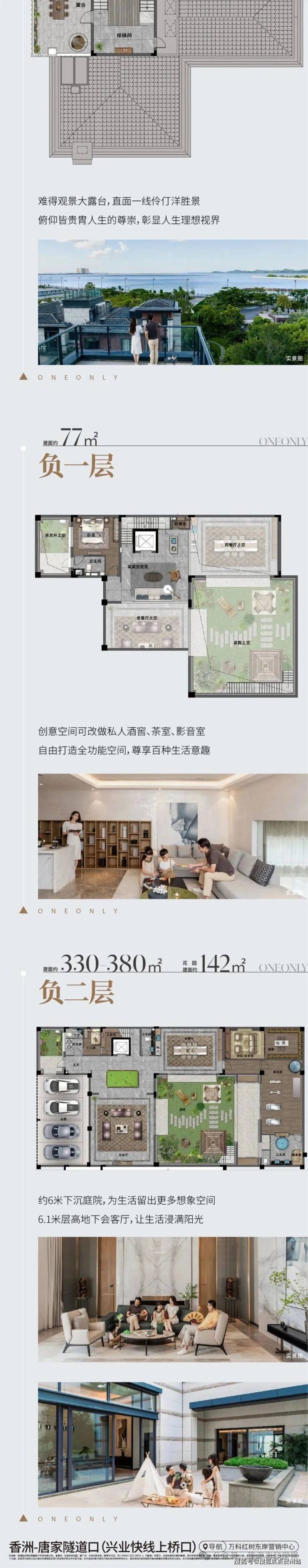 一线伶仃洋海景,将园林风景藏入家中,上叠位置最高,私密性相对较高,共3层空间,4楼可打造成公共休闲区;5楼则是纯粹休息区;顶层分为阁楼和露台