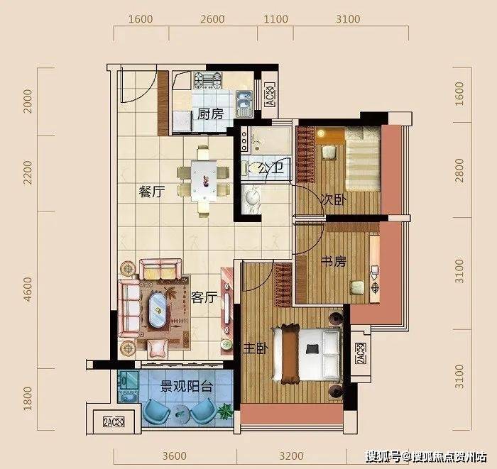 160㎡中户『梦境美泉宫联排南入户』(放大看原图)